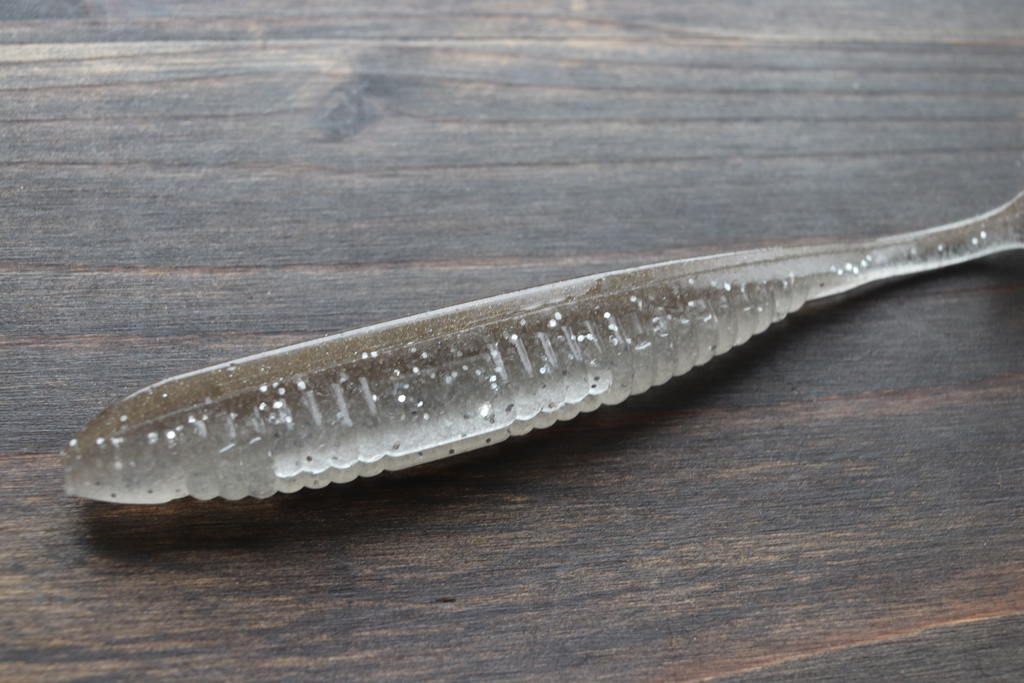 シャッド シェイプ ワームと同じ細いリブ付きボディ デザインを採用。