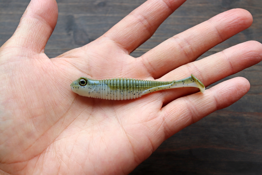 非常に汎用性が高く・・・、ドロップ ショット、ジグヘッドに装着してスイムベイト、あるいはアンダースピンのトレーラーなどに最適。