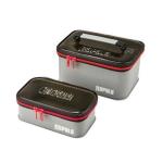 中身が見やすいクリア スモーク カラーの蓋で・・・、ジッパーは錆びにくい素材を採用。
