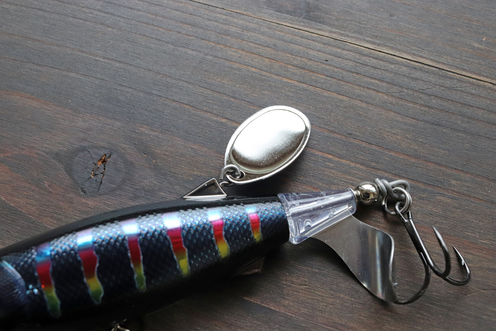 フロント フック アイはスイベル フック システムを採用・・・、ファイト中に魚がバレるのを防ぐ。