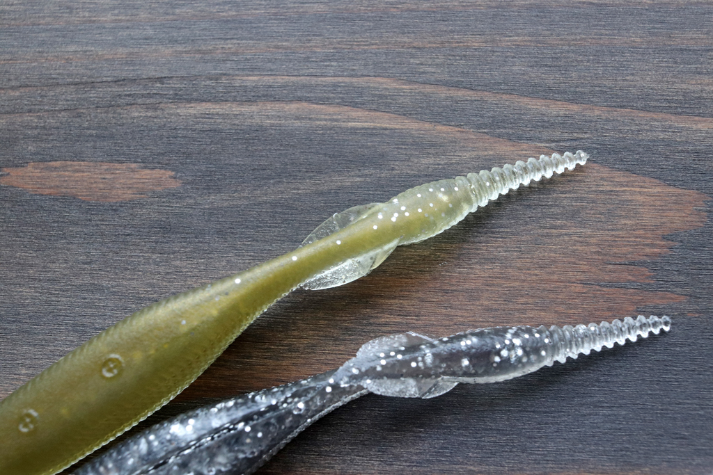 ボディ サイズは4.25インチ、ジグヘッドであらゆるバスを攻略できる万能サイズですが・・・、ノー シンカー ジャーク、チャターベイト、スピナーベイトのトレーラーとしても優れた性能を発揮します。